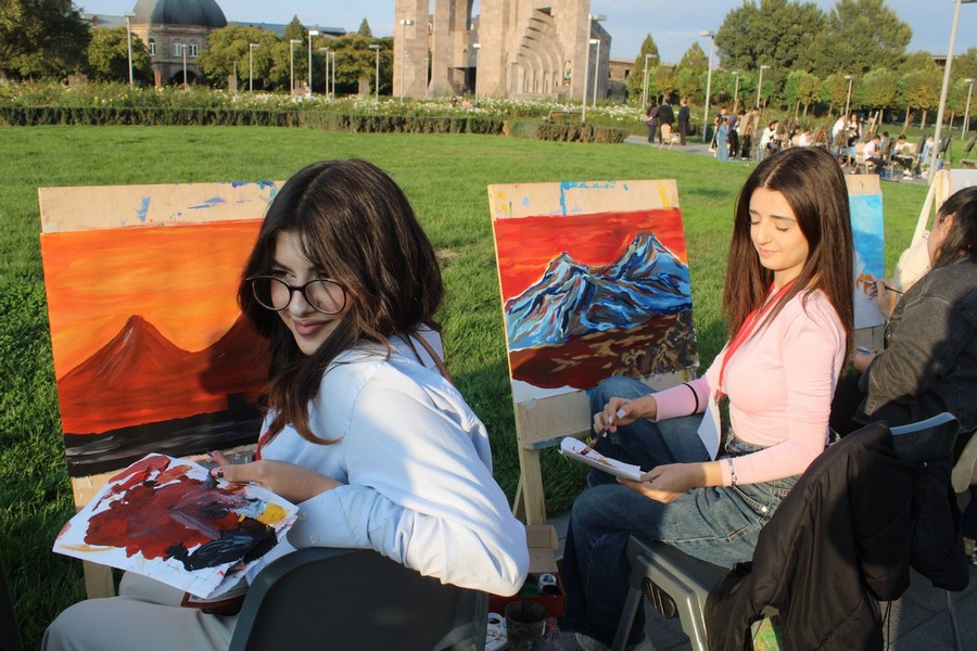 Ընթացքում շրջեցի տարածքում, զրուցեցի երեխաների, նրանց ուսուցիչների հետ։ Քանաքեռի Մանրանկարչության արվեստի կենտրոնի տնօրեն Աննա Սեդրակյանը նշեց՝ ծրագրին իր ղեկավարած կրթօջախից մասնակցում է 12 սան՝ ուսուցչուհի Զարինե Մկրտչյանի ղեկավարությամբ։ Կենտրոնի 11-ամյա սաները՝ Նատալի Տիգրանյանն ու Շուշանիկ Մուսիկյանը, սիրով էին նկարում․ ասացին՝ երևի նկարիչ դառնան։ Էջմիածնի Հայորդաց տան սաներ 15-ամյա Ալլա Ղազարյանն ու Լիլիթ Կիրակոսյանը ջրաներկով էին նկարում, բուժքույր են դառնալու։ Իսկ 11-ամյա Մարի Գրիգորյանի երազանքն է հայտնի նկարիչ դառնալ։ 8-ամյա Դիանա Սահակյանը Մասիսիների ներքին հատվածում Հայոց պետական դրոշի 3 գույնով պատկերներ էր նկարել․ ասաց՝ հրեշտակներ են։ Աշտարակի հայորդաց տան նկարչության բաժնի ուսուցչուհի Գայանե Խաչովյանի ղեկավարությամբ 15 երեխա էր մասնակցում ծրագրին։ Ասաց՝ դպրոցում ընդհանուր 6-15 տարեկան 18 երեխա է մասնակցում նկարչության դասընթացներին։ Բայց կարող են ընդունել նաև մինչև 18 տարեկանների։ Նրա սաներից 8-ամյա Հասմիկ Մնացականյանը Արարատ սարի ներքևում 5 երեխա էր նկարել։ Ասաց՝ աջից երրորդն ինքն է։ Նա համոզված է՝ հայտնի նկարիչ է դառնալու։ Էջմիածնի արվեստի դպրոցից 12-ամյա Գագիկ Հովակիմյանի նկարում Արարատի վերևով ինքնաթիռ է անցնում, լանջերով՝ թռչուներ, դիմացը հասունացած բերքով նռնենիներ են։ Այդպես է տեսել Արարատը։ Երևանի Մալաթիա-Սեբաստիա վարչական շրջանում գործող Հայորդաց տան նկարչության խմբակի ուսուցչուհի Լիլյա Պետրոսյանը 2023թ․ սեպտեմբերի վերջին Ստեփանակերտից է եկել։ Ասաց՝ իր դասավանդած խմբում սովորում է18 աշակերտ, բայց ծրագրին մասնակցում է 5-ը։ Նրանցից Սամվել Ղազարյանն Արցախի Խաչմաչ գյուղից է, իսկ Մարիա Աթաջանյանը՝ Ստեփանակերտից։ Նրանք և իրենց դասընկերներ Նատալի Սամոլևսկայան, Կարինե Մանուչարյանը, Էլիտա Մարգարյանը վառ գոյներով էին պատկերել Արարատը։ Հետաքրքիր ձևով էր Արարատը պատկերել 16-ամյա Միլենա Եղյանը։ Մասիսները շղթայված ձեռքեր են նրա նկարում։ Ասաց՝  հաստատ նկարիչ է դառնալու։ Նույն խմբից 13-ամյա Արևիկ Փարսադանյանի նկարում Արարատի գլխին արև էր։ 18-ամյա Մարիամ Խաչատրյանը, որն ուսանում է Հայաստանի գեղարվեստի պետական ակադեմիայի դիզայնի բաժնի առաջին կուրսում և ցանկանում է անիմատոր դառնալ, Մասիսը նկարել էր՝ ըստ իրեն Նախիջևանի կողմից․ այդպես է պատկերացնում ինքը։ Երևանի հումանիտար տեխնոլոգիական քոլեջի 16-ամյա սովորողներ Տաթև Խաչատրյանը և Անահիտ Սանոսյանը դիզայներ են դառնալու։ Տաթևը «Մայրամուտյան Արարատ» էր նկարել, իսկ Անահիտը՝ «Արյունոտ Արարատ»։ Կազմակերպիչների կողմից որոշվեց՝ լավագույն նկարների ալբոմ տպագրվի։