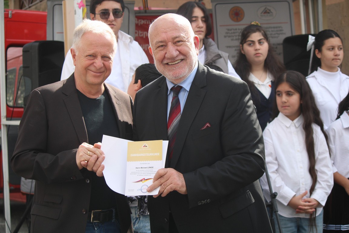 Արարողության վերջում Մ․ Պողոսյանը շնորհակալագրեր հանձնեց «Հուսո տուն բարեգործական հիմնադրամ»-ի աջակից անհատներին՝ օդաչու Բագրատ Խաչատրյան, Անահիտ Բալաբեկյան, Ալբերտ Տոնեյան, Էջմիածնից Ղազարյանների ընտանիքը, այլոք։ Արարողության ընթացքում իրենց պարային հրաշալի կատարումներով ներկաներին ողջունեցին «Բելլա» պարային համույթի հրեշտակակերպ փոքրիկ պարուհիները։ Ազգագրական երգերի կատարումով հանդես եկավ «Գաթա Բենդ» խմբի հիմնադիր, սարկավագ Անդրանիկ Մանուկյանը՝ պարի հանելով «Հույսով լի և առողջ մանկություն» ծրագրի երեխաներին ու հյուրերին։ Տոնական արարողությունից հետո Մ․ Պողոսյանը պատասխանեց գերմանացի հյուրերի հարցերին։ Եղավ նաև տոնական հյուրասիրություն: