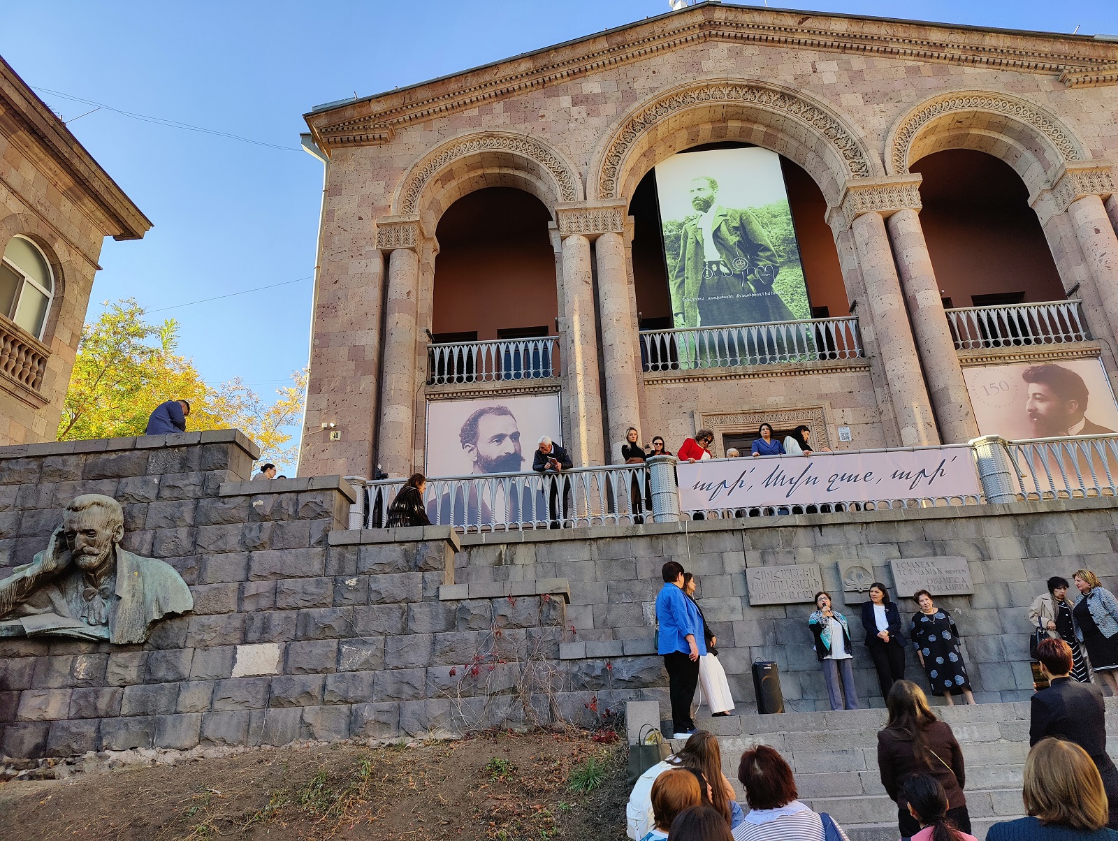 Մարդաշատ էր Թումանյանի տուն-թանգարանի բակը: Մեծ բանաստեղծի տարիքը խորհրդանշող 54 աստիճանները չէին խանգարել տարեց երկրպագուներին՝ հաղթահարելու այդ ,,խոչընդոտը,, , քանզի ականատեսը պիտի դառնային Վարպետի ծննդյան 150-ամյակին նվիրված միջոցառման շրջանակում գրականության երկու հսկաների՝ Թումանյանի և Իսահակյանի ,,երկխոսությանը,,նամակների միջոցով: