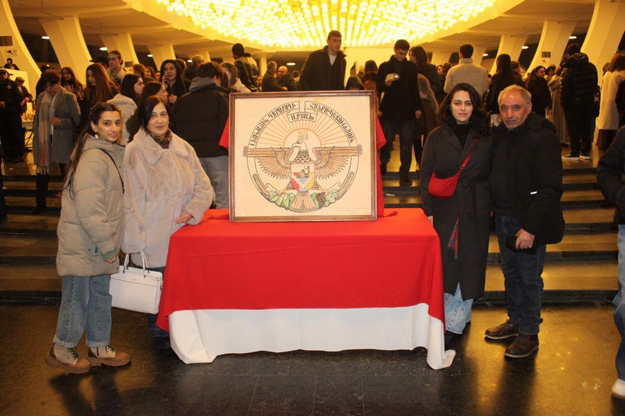 Հունվարի 18-ին Երևանի Կարեն Դեմիրճյանի անվան մարզահամերգային համալիրը արցախյան շնչով էր հագեցված։ «Արցախյան մշակույթի պահպանման կենտրոն» ՀԿ-ի և «ՄՈՒՆՔ» տեխնոդպրոցի նախաձեռնությամբ կազմակերպվել և իրականացվեց «ՄԵՆՔ ԿԱՆՔ» մեծ համերգ-միջոցառումը։ Մինչ համերգի սկսելը՝ համալիրի գլխավոր մուտքից դռպի դահլիճներ տանող հատվածում կայացավ ցուցահանդես, որի մուտքն սկսվում էր Արցախի Զինանշանի բնանկարով։ Այն իրենից ներկայացնում է մի թևատարած արծիվ, որը կրում է Արտաշեսյանների արքայատոհմի թագը, իսկ գլխավերևում տարածվում են արևի ճառագայթները։ Կենտրոնում դրված է վահան, որի վրա պատկերված են Արցախի դրոշը (հորիզոնական դիրքով) և Ստեփանակերտի մոտ գտնվող «Մենք ենք մեր սարերը» («Տատիկ և Պապիկ») հուշարձանը՝ Մեծ Քիրս լեռան ֆոնին։ Ներքևի մասում արծվի ճանկերի մեջ խաղողի վազեր են, թթենու պտուղներ, ցորենի հասկեր։ Վերևի կիսաշրջանաձև ժապավենի վրա արված է հայերեն մակագրություն՝ «Լեռնային Ղարաբաղի Հանրապետություն-Արցախ»։ Զինանշանի հեղինակ Լավրենտ Ղալայանն այցելուներին ներկայացնում էր՝ ինչպես է ստեղծել այն։ Արցախյան բազում կազմակերպություններ՝ մշակութային խմբեր, տնտեսվարողներ, անհատներ, որոնք այժմ գործում են ՀՀ-ում, իրենց արտադրանքն էին ներկայացրել նաև վաճառքի համար։ Գործում էին սննդի կետեր՝ արցախյան ուտեստներով։ Երևանում գործող «Հուսո տուն» բարեգործական հիմնադրամը ներկայացրել էր իր հովանու տակ ստեղծագործող արցախցի երեխաների ձեռքի աշխատանքները, նկարները։
